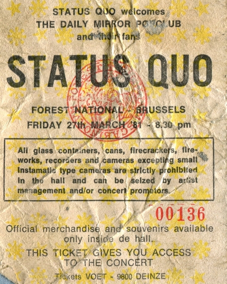 De 1968 à 2022, Status Quo a donné 63 concerts, en Belgique, devant plus de 400.000 personnes établissant l'un des records d'affluence du pays. La Belgique ne délivrant pas de disques d'or dans les années 70 et 80, il est difficile de dresser des chiffres d'une extrême fiabilité mais il est, cependant, possible de penser que les ventes globales avoisinent le million d'exemplaires sur ces 54 années.